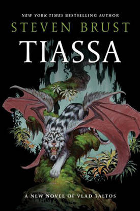 Tiassa is structured in three novellas, spanning ten years of Vlad’s life, with some interstitial matter. The first novella, “Tag,” is a caper story set in the early part of the series and is told in the Chandleresque, hard-boiled style that characterized the first few books. The middle novella, “Whitecrest,” is a story of political intrigue set during Vlad’s exile, told with expert timing and a lot of wit. The final novella, “Special Tasks” is told in the style of The Phoenix Guards and its sequels, a highly mannered, absurdist adventure story in the mode of Alexander Dumas. All three revolve around a maguffin, the silver tiassa (an animal like a winged tiger), fashioned by a mischief goddess and possessed of hinted-at mystical powers.