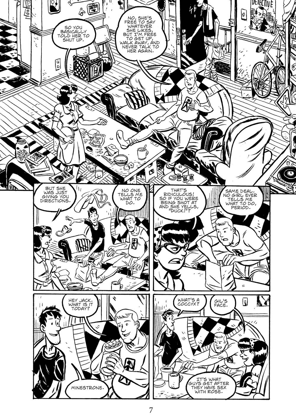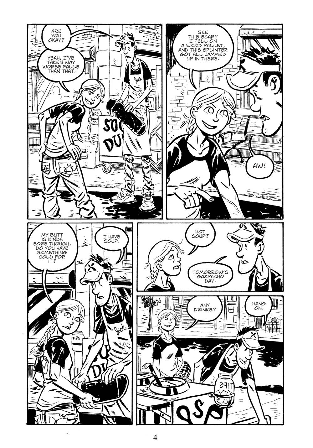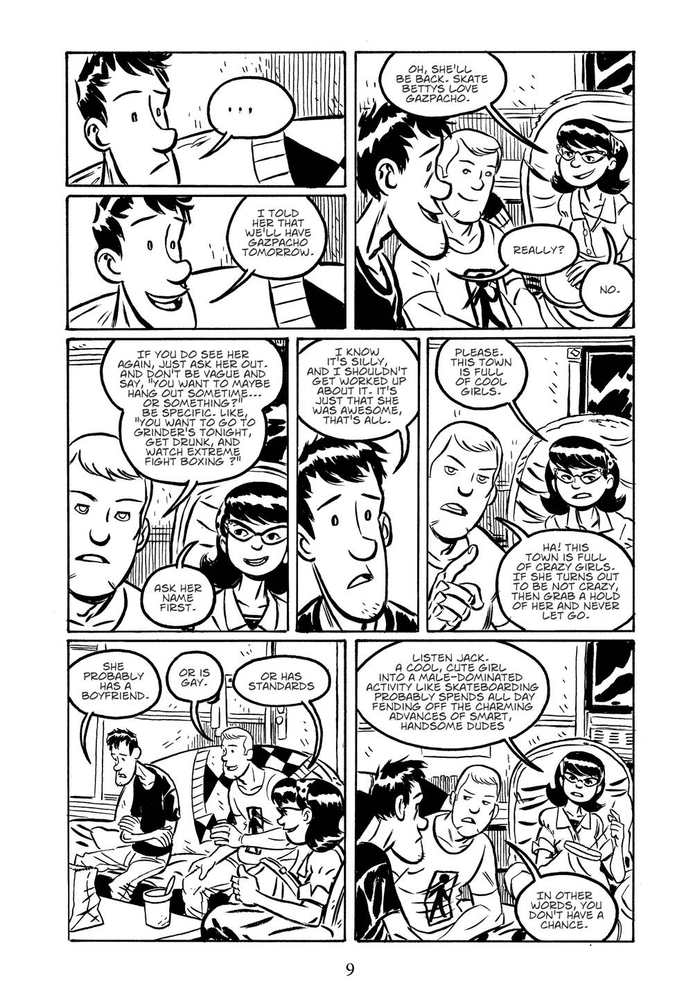 But the more Jane learns about Jack, the more she realizes that he’s just what she’s looking for: she doesn’t care if he’s well-coordinated or tactful. What counts is his simple love, his good heart, and his devotion to her. The story of their love is sweet without being saccharine, full of great slapstick and romantic comedy. It’s a romance in the vein of Kyle Baker’s terrific Why I Hate Saturn (but without the chase scenes), and it’s just the thing to cheer you up on a bad day. Skate-punk love has never been this adorbs.